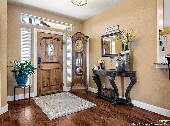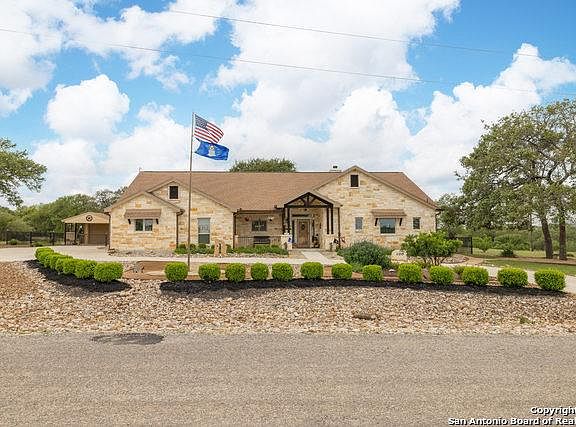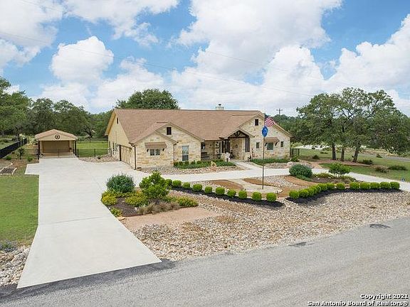 Single story 3/2 hill country home on a 1.13 lot with plenty of "extra's" for the money! In addition to the usual split bedroom layout, open floorplan & high ceilings, this home ALSO features a chef style gas cooktop w/warming drawer, tankless water heater, enclosed /screened patio area, an oversize double car garage large enough to hold a Texas truck, a master bedroom with it's own covered patio & safe room, an outdoor patio w/built-in grill & frig, circular driveway with RV parking pad & power hook up PLUS a sep. detached carport/storage area to keep the yard tools out of the garage! All this in addition to the home being "move in ready" and located in a gated, golf course community! Call today to set up your showing appointment while this one is still available - you won't be disappointed!