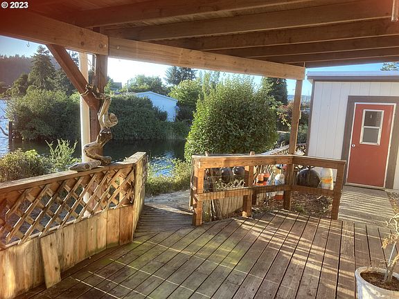 Awesome water views from the deck with a quiet setting! Located in a 55+ Reedsport Mobile Resort this 2 bdrm, 2 bath, 1296 Sq Ft manufactured built in 1985 has new carpet, vaulted ceilings, built-ins and an indoor utility room. Close to fishing, beaches, dunes and shopping. Space rent of $734 includes 1 car garage, water and sewer. Buyer needs park approval.