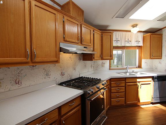 Discover this well cared-for 2 Bed, 2 Bath manufactured home located in a serene 55+ park that is on the river. The open floor plan boasts abundant windows and skylights, flooding the space with natural light. The well-appointed kitchen features stainless steel appliances and an a lot of storage. The family room, utility room, and spacious master bedroom offer comfort and convenience, with the primary suite including a walk-in closet and an en-suite bathroom. Step out from the primary bedroom through a sliding door onto a covered back patio. Additional highlights include approximately a 40 ft. oversized RV carport with extra parking, a workshop, and a fenced backyard with a small garden. A newer 30-year roof was installed just 2 years ago. Enjoy fishing at both Umpqua and Smith river, close to the Ocean, Sand dunes, hiking trails, and local restaurants.