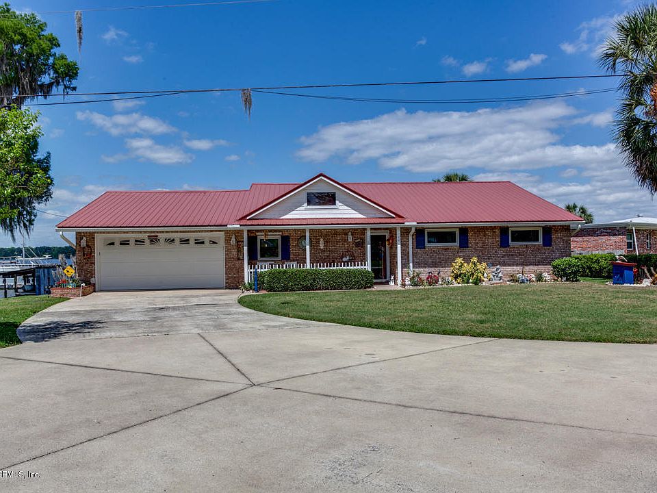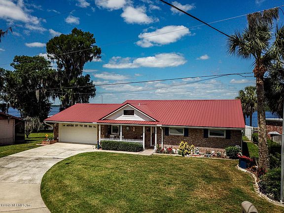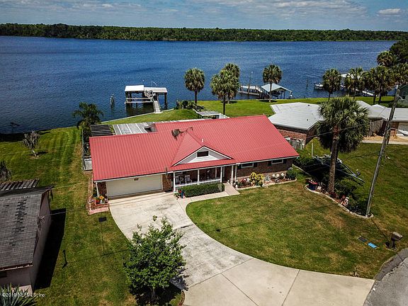 **35,000 Price Reduction** Very motivated seller. Spectacular Riverfront Views. This home situated right near the mouth of Dunns Creek, on the Beautiful St. Johns River. Enjoy River life at its best while sitting on your own dock! Mid Century Brick home with lots of updates, Screened Porch, Glass Sun Room over looking the St. Johns. 3 bd, 2 ba. Huge Great Room with views of the River, just off Sun Room and Screened porch. Large master with Sliding glass doors out to Sun Room with awesome river views. Remodeled Master Bath, large Shower. Summer kitchen partially complete, needs appliance's. New concrete bulkhead 2005. Irrigation pump at dockhouse. Double decker dock with boat lift. A must see. Just 30 minutes to St. Augustine and Beaches.