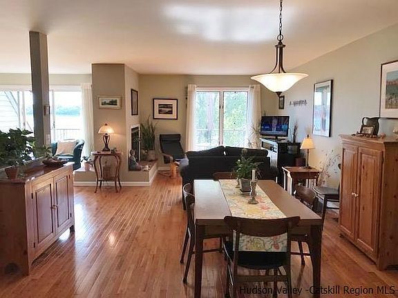 The Hudson River at your Feet! Just you and the river and no rooftops in sight. This lower level home's lovely open design offers a no maintenance easy kick-back lifestyle. Walk in on the ground level to this private condo to find a warm, move in-ready, expandable one bedroom, one and a half bath home. It offers a new kitchen including new floor and appliances and a main floor laundry. Recent additions include a new air conditioning unit, new water heater, new siding, deck, and railings. An abundance of storage and a spacious garage provide plenty of room for kayaks, bikes and all your outdoor gear. It is truly a special location and offers a unique and intimate vantage point from which to enjoy the river. In warm weather relax on your over-sized deck and enjoy the birds, wild life and all the river has to offer. In winter, while being warmed by the double sided fireplace, enjoy a wide open winter white riverscape and the magnificent sight of soaring bald eagles.