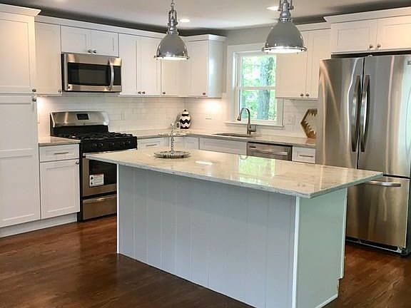 Newly renovated home in a superb location at the end of a quiet cul-de-sac in Precinct 1. This split level home has an open floor plan with brand new kitchen and bathrooms, a fireplace in the living room and an enclosed porch off the dining room which overlooks a private wooded rear yard. The basement (not included in square footage) has a finished family room with gas fireplace, full bath, laundry room and a two car built-in garage. The house is just minutes to the commuter rail station, schools, Legacy Place and University Ave shopping.