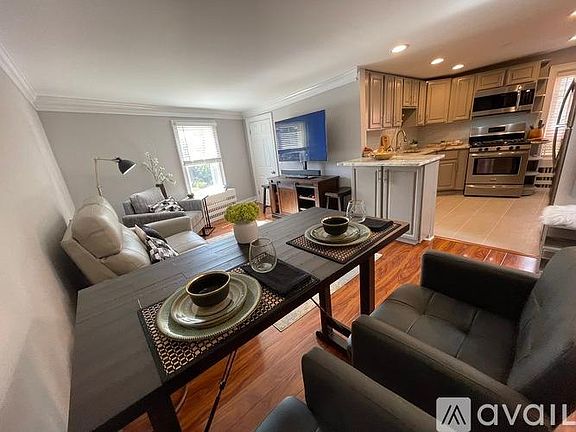 FULLY FURNISHED, ONE YEAR OR A SHORT TERM AVAILABLE from 3 MONTHS, FULLY REMODELED. PERFECT TEMPORARY HOME. Turn key! Move-in Ready! Beautifully furnished, modern deluxe style. Completely renovated and fully equipped with everything for comfortable upscale living 2 BR apartment in the historic building in downtown Hightstown. Home office ready - two beautiful desks and task chairs. Just bring your suitcase and laptop, literally! It is a beautiful place and probably one of the best fully furnished turn-key apartments you can find for this rent level, including a short term starting from only 3 months, with flexible extension. We are a small family business serving our community for over 20 years. Only steps from Peddie School, 10 min to Princeton Junction, about one hour drive to NYC and Philadelphia. Abundance of restaurants, cafes, shops, beautiful lake, walking paths, biking lanes, parks, movie theater, doctors offices, pharmacies - all in walking or short biking/driving distance. Excellent schools, including private Peddie School. Designated parking. Some highlights include: open plan living/dining/kitchen area, light granite countertops, including a peninsular, stainless steel appliances, all new bathroom with beautifully tiled shower and a marble sitter; new large size front loading washer and dryer. All floors are engineered wood and tile. Luxurious new power reclining loveseat in beige leather, 2 comfortable modern chairs, 55" SMART TV. Master bedroom features deluxe queen bed with new Casper matters and fresh bedding, dresser, elegant white desk and task chair and large closet. Second bedroom features a full size bed with new mattress and bedding, office area with large modern height-adjustable power desk, chair, closet, and a dresser. All new gourmet steel pots and pans, utensils, fresh bedding and towels, coffee-maker, toaster, etc. One year lease $2,500 per month plus utilities. Minimum short term lease is 3 months. Rent rate for 3-11 months is $2,750 per month plus utilities. 1 Month Security Deposit. Easy to Apply: 1) contact us and provide your general information - how long you need the place for and when is your move in date. 2) request a viewing - in person )or via FaceTime, if out of state) If you like what you see - request an application 3) Get approved in 1-2 business days , sign a lease and you are ready to move in with just your suitcase. Hightstown is a beautiful historic town. Lots of restaurants, parks, great shopping, Peddie lake, gyms, biking, and more. NO service fee, NO association fee. NO broker fee. Great value for a deluxe fully furnished and fully equipped apartment. Easy application process. One year or a minimum short term lease is only 3 month. Schedule your viewing, if you like what you see - fill out application, get approved in 1-2 business days and you are ready to live in your new home for 3 month or more, as you need, with flexible or fixed end date.