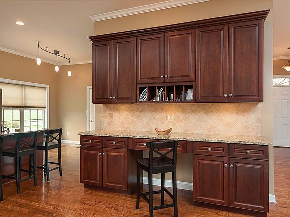 4 bedroom brick ranch on a basement in Canewood on a large, nicely landscaped corner lot. Home backs to open space & a great view. You'll love the attention to detail & open floor plan: Shiny hardwood floors & crown molding greet you in the foyer & continue throughout the main living areas. Home has a large Great Room, with a cozy fireplace & charming built-ins. Huge kitchen, with granite counters, attractive backsplash, & stainless appliances, has an abundance of counter & cabinet space, including a pocket office. Master suite features a spacious bedroom, huge walk-in closet, & an ensuite bathroom with a double-sink vanity, & a separate tub & walk-in shower. 3 additional bedrooms are all generously-sized. Walkout basement adds almost 1200 sq ft of finished space, leaving lots of options for separate living or play room. You won't want for storage or work space with the over 1100 sq ft of unfinished basement! The spacious deck and patio make a great spot to entertain or relax