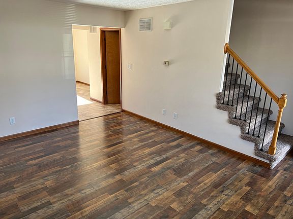 2 bedroom, 1 1/2 bath townhouse. Attached 1 car garage with opener. Hard surfacing flooring throughout. Lots of cabinet space in kitchen with black appliances including dishwasher and pantry. Deck off kitchen. Coat closet. Linen closet. Washer/dryer hook ups. Lawn maintenance included. Strict 2 car limit. Pet policy is one pet under 25 pounds. $25 more a month, $300 nonrefundable pet fee. Application, application fee, credit and background checks required. Lawn maintenance included.