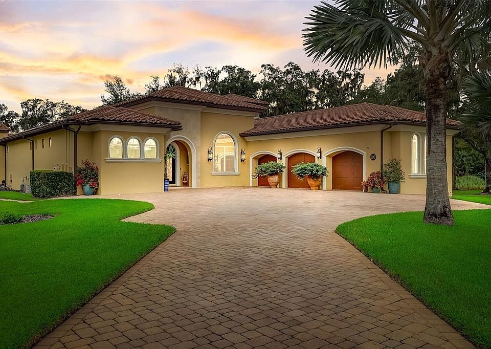 Rare opportunity to own this one of a kind ESQUISITE home on the St. Johns River. This stunner waterfront home sits on an over-sized lot adjacent to a wooded conservation area appealing to nature lovers and boaters. The boat dock features a lift that accommodates boats from 30 to 50 feet or 16,000 pounds (there is room for 2 boats!). The beautiful outdoor area is perfect for entertaining, featuring a stacked stone floor-to-ceiling fireplace, summer kitchen with gas grill, inground heated pool (with all new equipment)and spa overlooking the breathtaking water & flanked by gas fire urns. The interior of the home is just as IMPRESSIVE! The open floor plan is beautifully furnished to create an irresistible warm and refined ambience. Some features include gorgeous ceiling murals, high ceilings, extra large crown molding throughout, trey ceilings in the bedrooms, arched doorways, arched custom wood doors, travertine flooring, marble flooring & countertops in the owners suite bath, rich wood accents & beams, high-quality fixtures throughout. Top-of-the-line kitchen offers Sub-Zero, two Bosch dishwashers and six-burner gas Wolf range. The 3 car garage is a dream with lots of space (bring your golf carts, boat, etc). Other notable features include whole house generator (24 KW), whole house water purification/filtration system, electronic sound system throughout the house (including the garage), 2 tankless hot water heaters, BRAND NEW A/C just installed (upstairs), double insulated windows and doors, along with tinted windows. The list goes on and on of the extras, this home truly has it all! Furnishings are available. Located in the desirable gated community of Riviera Bella, which offers a clubhouse, community pool and fitness room. DeBary is a perfect location, close to Sunrail station, convenient to Orlando and beaches. Schedule your private tour today! Property may be under audio/video surveillance.
