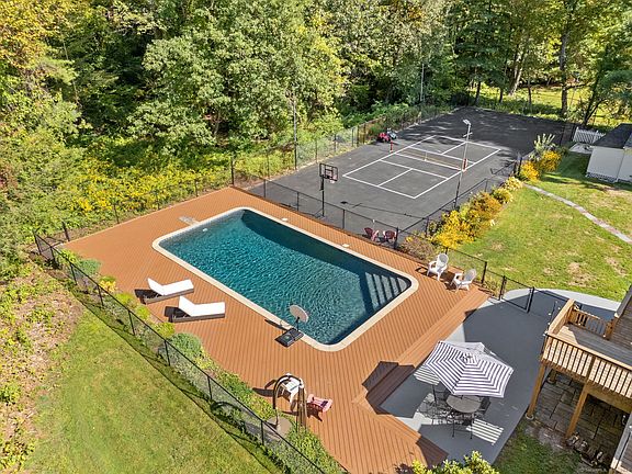 Live every day like you're on vacation in this stunning 3BR/3BA home with over 3,200 sq.ft. of beautifully updated living space! The gourmet kitchen features granite counters and stainless appliances, opening to a sun-drenched vaulted sunroom with natural gas hearth and gorgeous year-round views. Enjoy indoor/outdoor living with an expansive deck presiding over your private retreat.The open living/dining area includes a dual-sided gas fireplace. The main level also offers a serene primary suite with en-suite bath, two guest bedrooms, generous full bath, laundry room, and new bamboo flooring throughout. The walkout lower level is perfect for entertaining or an in-law suite-featuring a large rec room, gas stove, wet bar, fireplace, remodeled full bath, office/4th BR, den, cedar closet, and indoor Jacuzzi spa! Outside, unwind in your resort-like backyard with a heated saltwater pool, 2,500 sq.ft. of new composite decking, and tennis/pickleball court with brand new lighting. All set in a scenic neighborhood near UConn, highways, shopping & dining. A true staycation dream! Recent improvements include: New roof (2023), water heater (2022) refinished deck, "pebble-tec" pool finish and stairs (2023), LED lighting for walkways and tennis court, natural gas line for grill and so much more!