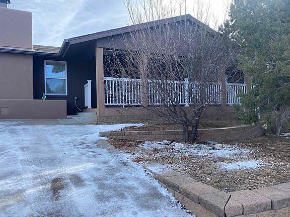Enjoy Views of the Sangres and convenient location with income potential or plenty of room for any and all of your needs. Short walk to grocery, library, restaurants, bank, and free bus stop. Hiking trail next to the house leads to Overlook and entire White Rock trail system. Property backs up to Pinon pool and has county land on the side. The 2100 sqft top level includes 3 bedrooms and two bathrooms, extra large living room with stunning brick fireplace and large family room with pellet stove. Beautiful oak wood floors throughout living spaces have been nicely maintained. Oak cabinets in kitchen with built in pantry, stainless steel appliances and range hood, Frigidaire hard surface electric cook top with side by side double ovens, Kitchen-aid dishwasher, Jenn Air counter depth side by side fridge with icemaker. Updated double pane windows throughout, 1200 sqft finished basement complete with its own separate entrance, two bedrooms (one huge with its own fireplace), bathroom, living room, kitchenette and laundry. Big back and side yard hosts electrified 10x16 Morgan Shed, chicken coop and dog run.