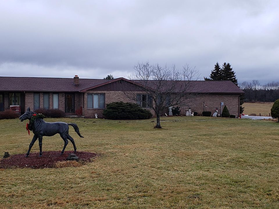 Classic Modern Brick Ranch Mini Estate with full apartment.Can be a mother-daughter home. Magnificent horse farm with pond and incredible views .6 stall horse barn, 2 horse rings and sectional pastures. Hay and Tac room.Kitchen with new counters and new oven. Mature landscaping with apple, pear and lilac trees. Come pull up a chair and relax on the huge deck viewing the pond, mountains and horses. Country living at its BEST!. Come and see this one of a kind, secluded , beautiful property!!