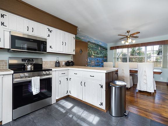 This home offers a comfortable floorplan, with a spacious living area, large kitchen, and large bedrooms. The fully equipped kitchen features bar seating for eating in or enjoying your morning coffee. A screened-in Florida Room offers comfy seating & a beverage bar, overlooking the backyard. In your backyard, you can entertain guests with a fire pit, hammocks, a charcoal grill, and a swing to enjoy while cooking. The privacy-fenced backyard with beautiful hanging patio lights offers a quiet space for relaxation and entertainment.