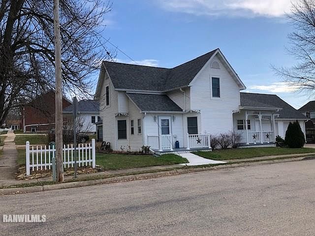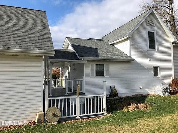This totally charming remodeled historic home overlooks a large park for relaxing views from both the sunny & covered decks. Entering the front door brings you into the roomy foyer with ample closet space, and into the Living room with it's natural gas log, Comfort-Glo, vent-free fireplace to take the chill off winter evenings. This room serves well as main floor bedroom when necessary as it has easy access through it's pocket doors to the main floor bath. The living room flows into a spacious family room with it's beautiful solid oak flooring and built-ins and then to a country kitchen complete with Kraftmaid solid Cherry wood cabinets, Corian molded sink and countertop, rollable chopping-block topped matching cabinet, movable closet cabinet, recessed laundry corner, walk-in lighted pantry, and separate dining area with view of the Park! Up the stenciled stairs you will find the Master has two closets plus additional large storage area and ample electrical outlets and cable connections. The second bedroom has one closet and the third bedroom was turned into an office/craftroom complete with a half bath for multiple potential uses. The Owens- Corning roof was put on in 2018, the natural gas furnace was new in 2004, and the electric hot water heater was replaced in November 2020. The detached 24'x28' 2-car garage was built in 2007 has it's own 100 amp breaker box plus a concrete driveway and loft storage. It has room for a boat to use at the public launch ramp on the nearby Mississippi River. Winter and summer there are activities & dining at nearby Chestnut Mt Ski Resort. Galena and Elizabeth, too, are close by for their historic charm as well as museums, shopping & dining offerings. Additionally, the Jo Daviess Conservation Foundation and some State funded public conservation areas are available for your outdoor pleasure in this unique Driftless Region. This home is ready for you, your belongings and your appliances. It's 4 Hunter ceiling fans will add to your comfort year-round and the many perennial flowers and herbs will delight you during the growing season.