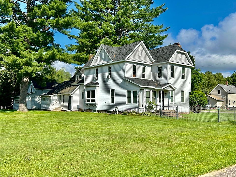 Charming Home or Duplex in Crandon! Discover the perfect blend of charm and functionality with this 5 BR, 3 BA home or duplex located on 2 city lots in Crandon. This versatile property includes an attached one-car garage, separate garage with upper-level storage, blacktop driveway, and a large fenced-in yard. The main level exudes character with its original gorgeous wood trim throughout and offers a convenient entrance with laundry, neat pantry for kitchen storage, spacious living room filled with natural light, bedroom featuring a beautiful wood-burning fireplace, another bedroom accompanied by a full bath, and a versatile room off the kitchen that could serve as an office/bedroom/study complete with a full bath. A charming porch with built-in storage completes the main level, offering a cozy space to relax. Upstairs, you'll find a stunning kitchen with all-new cabinetry and appliances, newly tiled bath shower and flooring, living room w/fireplace, and 2 nice bedrooms. Call today!