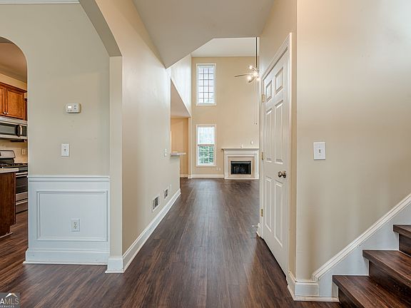 Lovely three story home in Kismet At Vista Lake located in Dallas Georgia! This 3 bed, 2.5 bath has everything you are looking for! Located in the HOA community with swim/tennis and well landscaped homes. As soon as you step inside you are greeted by a formal foyer with views into the private dining and two story family room. Fireplace at the center of the two story room has luxury vinyl flooring and wall of windows that stream in natural light. Kitchen includes stained cabinets, countertops, eat in breakfast area and pantry. Screened in porch and deck off the back of the home overlook nothing but trees. Primary suite has tray ceilings, large bathroom with double vanities and walk in shower along with massive closet. Two more well sized bedrooms make up the main and share a full bath. Downstairs is fully unfinished basement with walk out access that's awaiting your unique touch. Two car garage has high ceilings for bonus storage space. This is a can't miss home! HOA includes a pool, tennis courts, two playgrounds, a clubhouse, walking trails, and more!