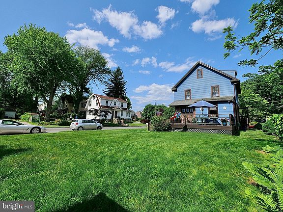 A PLACE TO HANG YOUR HEART! A place w/space, & vintage appeal! PRIDE OF OWNERSHIP! So architecturally pleasant from top to bottom! Welcome! #100 is perfectly placed on a corner lot so the whole neighborhood can admire it. You will too! This pointed brick, CH colonial just exudes charm! The house was freshly painted 6years ago and the soffits were capped so everything is easy to maintain.. Check out the gorgeous yard! Yes,all that green belongs to THIS special home. Think of the things you could do here for fun & entertainment. That perfectly manicured grass, hedges & shrubs. ..WOW! Can you see yourself relaxing on the well designed deck? You can fit lots of patio furniture here so there is room for all the company. It'll be a great summer, for sure! Some terms of endearment here: hardwood floors exposed in the expansive LR, lots of AC's T/O (1,4000 BTU's in the LR) & CF's to cool you off in summer...& w/the pellet stove attached to the brick FP w/newer stainless steel liner & tile hearth, along with the 2-year young Crown boiler, also w/a new liner (radiators all over the place) you can't help but feel comfy & cozy in the colder months. The Rheem hot water heater is also 2 years old! Tons of windows in this home definitely help the natural light to stream right in. Stroll up the newly cemented steps to the classic wooden front door & full view storm that opens to the center staircase, w/the expansive LR w/coat closet & CM to the left... then use the 2 sets of double French Doors to get to the wonderful, deeper than usual sunporch/den. Wooden ceiling & 4 sets of 3 windows here! YOU choose how you want to utilize this gracious space. Maybe you need an office, or the children need a place of their own to play...or maybe it's the room where you can catch some shows or ballgames in the evenings. To the right of the entry is the welcoming dining room, replete with a chair rail & more French doors. At the back of the house is the large kitchen w/shiny cherry cabinets, a SS sink w/gooseneck faucet, wine-colored c/top, white LG fridge & Magic Chef gas stove. There is a quarter bath just off the working kitchen area. On the other side of the kitchen is the large breakfast room, best for morning coffee or a quick bite to eat. The heavy duty exit door opens to the amazing deck. Upstairs houses three good-sized BR's, all w/CF's & plushy carpeting. There is a window at the top of the steps to shine light on the hallway. The primary BR boasts a walk-in cedar closet-quite unique & great for your sweaters! I comes complete w/ grey walls, new outlets & beige carpeting. The full hall bath shows off a newer, medium maple pedivan & a great looking, deep tub/shower area, plus a linen closet. But wait.. there's more! The entire third floor has been given an AMAZING makeover! (30"x14") Really nice Berber carpets, grey walls, large, open alcove and smaller ones, 4 eaves for storage & shelves in the double closet. There is a CF on one side & a brand new light fixture on the other. It looks like a new house up there, & the uses for it are purely yours..a teen suite, in-laws coming to stay a while & wanting their own space, play room, home schooling area,...or even a primary suite. The plumbing is already up to this point for a great full bath! What else can you think of? The lower level is huge (26X23) and unfinished. This vast space is neat and clean too. The walls have been parged & painted, & the electric service is 200 amp, w/several breakers not even being used yet. The outside shed was decorated to match the house--same color & window boxes too, right now filled with Spring flowers. It has a cross buck door. The sellers are offering a FREE 1 YEAR Home Warranty to the new owners! Quite a bonus! There is a great shopping center just up the street & you're not far from local Pizza parlors, ice cream shops & famous Bernie's Pretzels! You are in walking distance to bus lines, the trolley & the train! What more could you want? You win!