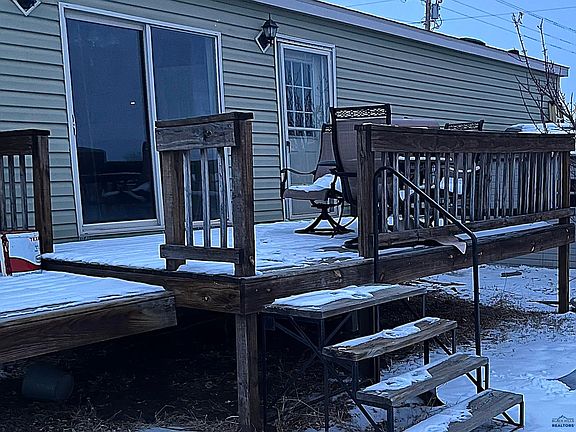 Nestled in the peaceful town of New Underwood, SD, this manufactured home on a permanent foundation is perfectly situated on a large completely fenced corner lot! The inviting living room showcases a beautiful stone fireplace, creating a cozy ambiance during those chilly evenings. The master bedroom is completed with a walk-in closet and a private full bathroom featuring a double vanity and a jet tub—perfect for unwinding after a long day. This home also offers two more bedrooms and a second full bathroom along with convenient main floor laundry. Outside, you’ll find two convenient storage sheds, offering plenty of space for tools, lawn equipment, or additional storage needs. Whether you're enjoying the spacious interior or making use of the outdoor space, this home is a great place to call your own! Just 15 minutes from Rapid City and easy access to I-90! Lot rent is $350/month. Listing agent related to owner.