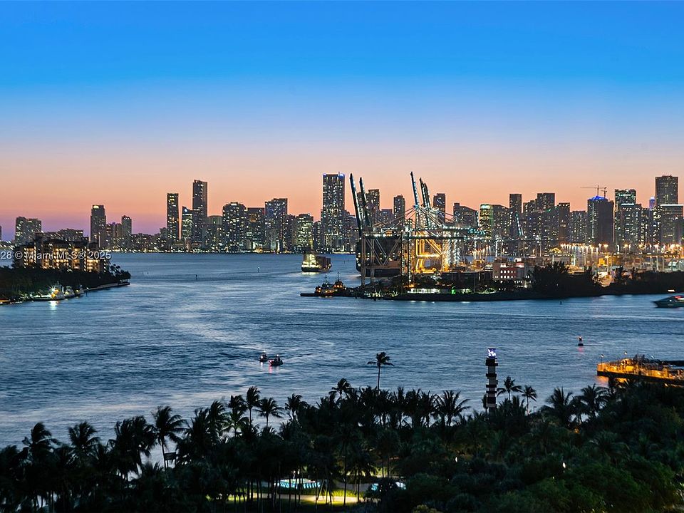 Experience pure bliss the moment you step into a bright, private elevator vestibule usuring you into a fully furnished, glamorous corner home in the sky, hovering over the most southern tip of Miami Beach. Substantially upgraded with fine appointments, including custom designed mirrored paneling, hand lacquered walls and custom wallpaper. Enjoy incredible sunset shows every day over the ever-changing Miami skyline, while cruise ships parade on by just below your oversized, southwest facing terrace. Generous walk-in closets, large laundry room +assigned storage room. Unequaled amenities include an 18K SF wellness center, private beach+restaruant, 3 har-tru tennis courts, 3 pools, all sprawling over a 13-acre private oasis. Walk to one of the best culinary scenes in Miami Beach.