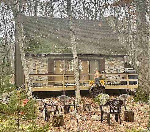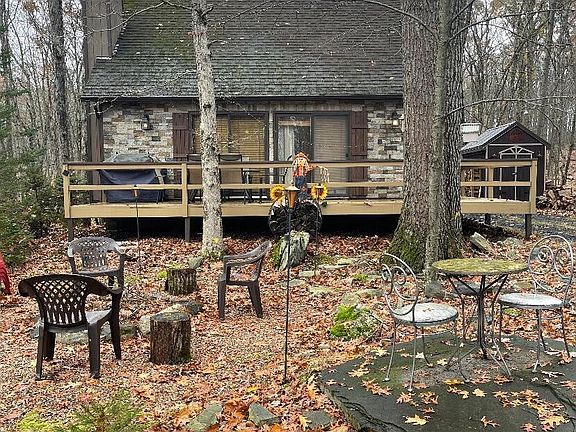 Welcome to paradise! Tranquil retreat with lake views. Nestled in the trees, home is a just a short walk to pool, playground and lake access. Recently updated to immaculate, sound condition& move in ready! Home is set on a quiet lot backed to a large parcel of greenbelt in desirable Sunrise Lake community. Easy access to major highways and 90 mins to NYC. Minutes to grocery store, supermarkets, restaurants and a short drive to historic Milford PA. Amazing hiking, biking and water falls nearby. Freshly painted inside and out, granite counter tops, new stainless steel appliances, new luxury wood-look flooring, plumbing, fixtures and tiles . Wood burning fireplace and large A/C. Vaulted ceiling, dbl sliders leading to deck. New shed. A must see!
