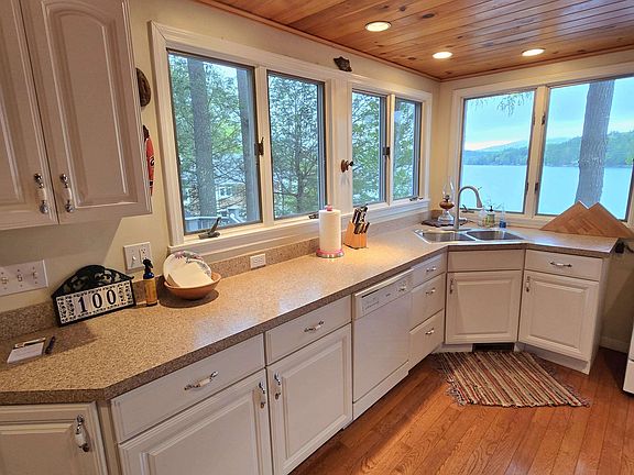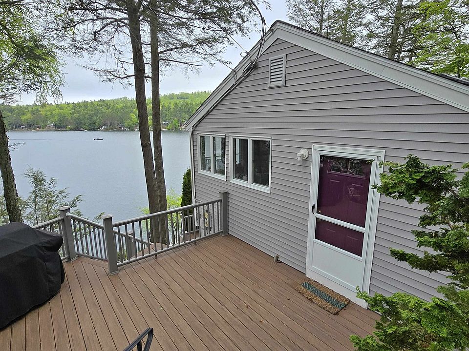 If you've been dreaming about owning a home on Crystal Clean Merrymeeting Lake don't miss this opportunity!!! Granite steps lead down to this lake front home with sweeping waterfront & mountain views. Multi level decks, deep water dock and kids will love the swim platform moored off shore. Canoe & kayaks ready for you to explore the 1233 acre pristine lake which is stocked with fish from a nearby hatchery. Step inside to discover the open concept living area with vaulted ceilings, lots of windows to let in the natural light. The living room boast a wood stove to take the chill off on cold winter evenings. Sit on your patio and watch the loons swim by. Call today for your Private showing!