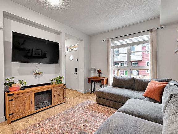 Welcome Home to this beautifully maintained HOMES BY AVI townhome offering nearly 1000 sq ft of stylish living space with 2 bedrooms and 2.5 bathrooms in one of Calgary’s most desirable communities. The open-concept main floor is bright and inviting, featuring LUXURY VINYL PLANK flooring throughout. The chef-inspired kitchen showcases shaker cabinetry, QUARTZ COUNTERTOPS, an oversized island, stainless steel appliances, and a subway tile backsplash, flowing seamlessly into the living and dining areas. A convenient half bath completes this level. Upstairs you’ll find two spacious bedrooms, each with its own bathroom. The primary suite includes a WALK IN CLOSET and PRIVATE ENSUITE, while the second bedroom is served by another full bath. Smart storage with both a linen and broom closet adds to the functionality. The undeveloped basement provides future potential with rough-in bathroom plumbing, front load laundry, and plenty of storage. Enjoy outdoor living in your fenced courtyard with concrete patio, and GAZEBO, perfect for summer BBQs. STAY COOL all summer long with CENTRAL AC. A titled parking stall is included, with visitor parking nearby. Outstanding location—steps to Fish Creek Park, schools, playgrounds, dog parks, and sports fields, plus quick access to shopping and dining at Township at Legacy. Easy commuting with nearby public transit, Stoney Trail, and Deerfoot Trail. This is modern, low-maintenance living at its best!
