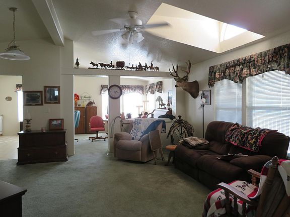 Desirable senior living. 3 bedrooms, 2 baths 1350 sq. ft of living space. Newer forced air heating and air conditioning. Extra large yard space with all new landscaping front and back. Perfect for barbeque or just hanging out. New automatic under ground watering system for plants. Covered carport. Handicap ramp off of carport. 2 large outbuildings for storage. Shared pool.