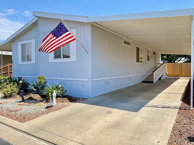 Welcome to Westwood Village. This beautiful 3 bedroom, 2 bath manufactured home shows pride of ownership and has been very well maintained. This is MOVE IN READY!! Beautifully painted, landscaped with a drip system for the garden, new porch with extended coverage for nice shade. Large shed in the back that is newer with electricity and painted to match the home, could be a great work space, gardening area, storage or whatever you like. Backyard is beautiful and has a nice area for you to BBQ (seller is also leaving BBQ!) Handicap access. New fencing on each side (East & Westside) adds a nice touch for great curb appeal. Inside you will find newer flooring, indoor laundry (newer washer and dryer included) and pantry. Central heating and cooling (unit is only a little over 1 year old) dining area and eat in bar area and the newer refrigerator is also included. If you are looking for somewhere to live with low maintenance, peace and quiet and the security of a gated community this is it! Clubhouse with kitchen, swimming pool, community fire pit, BBQ area, library, pickle ball and bocci ball are also some of the great amenities of living here. Senior Living. Must be 55+ or older. Seller is offering 3 months of space rent to a new Buyer! Call your favorite Realtor for a showing today.