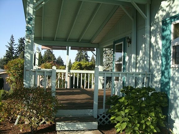 This pit-set home is located in a 5-star senior gated community. The Goldenwest has tape & textured walls, vaulted ceilings, & vinyl windows. Kitchen has skylight, pull out shelves, & lots of cabinets for storage, breakfast nook off kitchen. Dining has ceiling fans and a lighted built in hutch. Master bed is extra large with a walk-in closet. Master bath has double vanity, garden tub, walk-in shower, & linen closet. Guest bath has solar tub & double walk-in shower. Yard: Well maintained yard with shrubs & roses, 2 storage sheds, semi private backyard. Financing available OAC. 100 SW 195th Ave #58, Beaverton. #14051