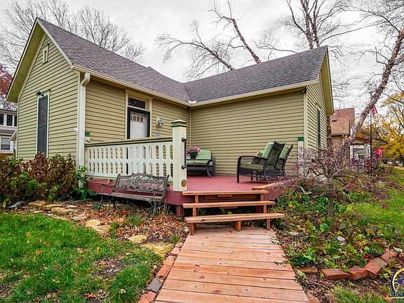 What a charm of a home this is!!! An inviting front deck for porch sitting & accented by the brick sidewalk out front. Newer front door topped with a stained glass transient window. A fun living room with soaring ceilings, a curved wall with a built-in, and shiny trim & baseboards. HUGE eat-in kitchen with amazing countertop space and a large island. An abundance of natural light with large windows over the kitchen sink as well as the skylight above. Main floor laundry, main floor bedroom & a bonus room to the upper level "nest." Fun angled ceilings in the primary bedroom just keeps the character of the home coming! Nice cozy basement for storing items and mechanical systems. The backyard is a private setting with a brick patio and a wood privacy fence. Unique landscaping surrounds the home for you to admire! Notes of improvements: newer heating system, newer water heater, roof & gutters ~13 years old. Schedule an appointment soon!
