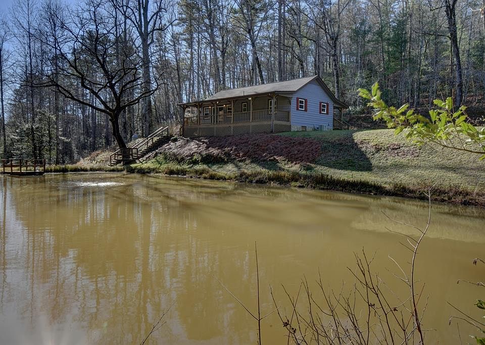 Unbelievable, one of a kind property...cabin, pond, detached barn/shed surrounded by trees with MANY updates, including (tankless water heater, all new windows, sliding glass door, vapor barrier, gutters with guards, pond drain, pond aeration pump, refrigerator, washer and dryer, all new facia boards, just to name a few.). Close to town, restaurants, schools, recreation, etc. *Beginning of the driveway is a permanent easement.