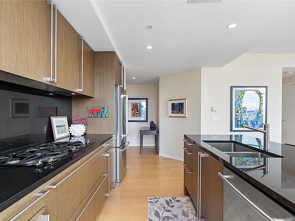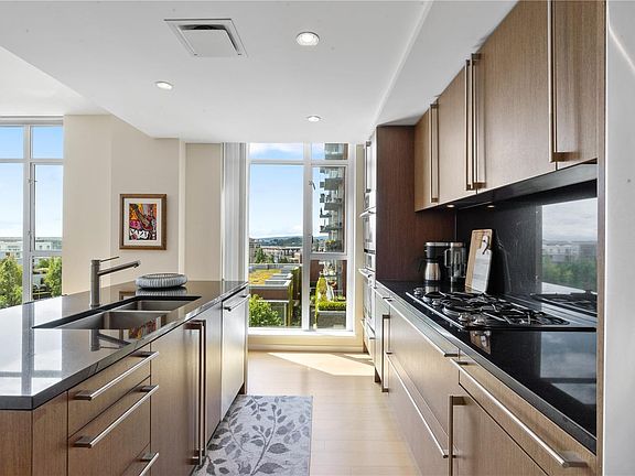 Gorgeous 2 bed 2 bath corner unit with stunning views of the Inner Harbour and Olympic Mountains. Located in the coveted Songhees area of Vic West, this spacious unit has over 1460sqft and a fabulous open layout. Featuring 9 foot ceilings, floor to ceiling windows, large balcony, and in suite laundry this unit is a rare find in todays market. The bedrooms each feature a luxurious 5 piece ensuite and are separated by living area for privacy. The Bayview One amenities are second to none, offering a concierge, resident manager, car wash bay, pet wash area, fitness studio, hot tub, conference room, social lounge, bbq/fire pit, bike, kayak storage and secure underground parking. One of the rare buildings in Victoria that has AIR CONDITIONING! Rentals and pets allowed. Walking distance from downtown, inner harbour, restaurants and more! This is the perfect home for anyone looking to downsize without compromising. Book your private showing today!