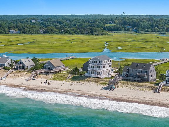 Brand-new oceanfront home on the spectacular Spring Hill Beach! This coastal retreat offers three full floors of luxurious living space, with plenty of room for everyone to gather and unwind. The open-concept kitchen is perfect for entertaining, featuring crisp white cabinetry, a rich walnut island, gleaming quartz countertops, and a spacious butler's pantry. Gorgeous wood floors run throughout the home, adding warmth and elegance.The second floor offers three bedrooms, each with its own en-suite bath--perfect for privacy and comfort. The top floor features a fourth bedroom and a fantastic bonus room overlooking Cape Cod Bay, complete with its own deck to take in the sweeping views.Enjoy breathtaking vistas of the Bay and the tranquil tidal creek from nearly every room. Step outside to expansive decks--ideal for hosting friends and family--where you'll feel the warm bay breezes and take in the stunning natural beauty. Your own private sandy beach awaits just beyond the deck.Launch a boat from your private dock on Old Harbor Creek, fish from the dock or shoreline, or simply relax by the water's edge.