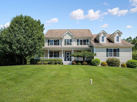 This home is a natural beauty inside and out. Set back on a private tree lined lot enjoy the magnificent sunsets from the wrap around front porch to the private backyard Oasis with privacy fencing, mature landscaping, beautiful heated in-ground salt water pool, playground, shed, expanded deck with natural gas for grill and maintenance free railing, stunning landscaping and paver patio/walkway. Please see all photos. The interior boasts a hardwood floors, recessed lights, crown moldings, chair-rail, 9 ft. ceilings, alarm system, C/A, water softener with water pressure increase, 3 car garage with openers, a 2 story foyer with hardwood floors and upstairs balcony overlooking the oversized family room with 2 story cathedral ceilings, ceiling fan and a floor to ceiling stone 42 gas fireplace. A formal living room, an oversized dining room, half bath with linen closet, a den with glass French doors, kitchen with electric range and natural gas in place to convert, granite countertops, Bosch dishwasher, limestone backsplash, island, pantry, desk, bumped out bow shaped breakfast nook, separate laundry room with utility sink and access to 3 car garage. Upstairs hall has hardwood floors, balcony overlooking the oversized family room, hall bath with double sinks, master suite with double doors, tray ceiling and oversized walk in closet. Master bath with double sink, shower, Jacuzzi tub and 2 linen closets. 3 generous sized bedrooms all with walk in closets. Each bedroom has ceiling lights and is wired for ceiling fans. The basement is just waiting to be finished. Rough plumbed for full bath, 4th zone at furnace for future heat, high ceilings, slider to paver patio and that backyard Oasis. All this in a golf course community just minutes from the Taconic Parkway. Blinds stay. Some curtains can stay as well. Outdoor speakers can stay. This is a must see!