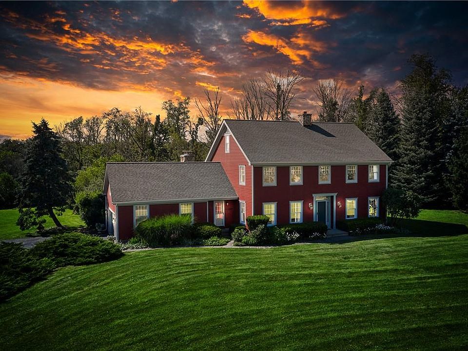 Welcome to Windwest! A classic and timeless fully renovated center-hall colonial that has bountiful picturesque views of Warwick, NY mountains! Decorator-owned and renovated, this home was given new life in 2003. Custom millwork throughout includes oversized crown, floor moldings, and raised panels with oversized windows that take in the picturesque views from every direction. The details in each room of this home complement the style of this classic colonial that will outlast the test of time! The first floor includes a dining room, living room, and flex room that could be used as a private home office or bedroom with access to a main floor full-bathroom beautifully refinished in marble. The large open eat-in kitchen feature granite countertops, Monogram GE full-size refrigerator and full-size freezer, high-end appliances, and custom hardwood cabinetry. The kitchen flows into the open family room with a vaulted ceiling that leads to a remarkable outdoor oversized porch shaded by mature wisteria, a brick patio with a built-in fire pit, and a very large backyard that could be a family farm or other endless possibilities! Upstairs finds 4 spacious bedrooms including a large primary en-suite with vaulted ceilings, mountain views, and a spa-like vaulted ceiling bath with a walk-in shower and relaxing oversized soaking tub. A finished bonus room over the garage offers a great opportunity for another home office, craft room, playroom, or den. The unfinished basement offers many possibilities for storage or additional hobby spaces. Other features include:a first floor full-bathroom, primary bathroom renovated 2021, 2 car garage, roof 2008, Hardiplank and cedar siding, hot water heater 2021, propane fuel, central vacuum, 5.2 acres, seasonal pond/stream in back of the property. Enjoy the many amenities of the area: hiking, boating, golf, farmer’s markets, wineries, breweries, restaurants, and skiing. Conveniently located for commuting and within 50 miles to the GWB, walking distance to schools, and minutes to the Village of Warwick. Additional Information: ParkingFeatures:2 Car Attached,