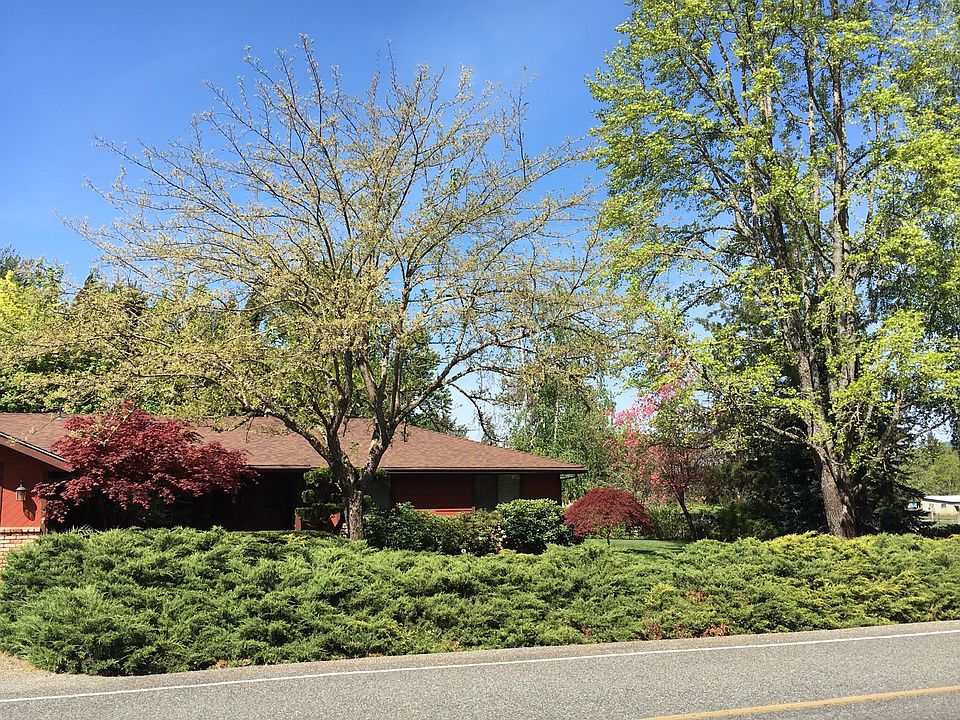 Beautiful large landscaped yard with Front & Back Covered Patios, Japanese trees, fruit trees, concord grapes, with private setting. Open floor plan with Family room & Great room with a vaulted ceiling, beautiful rock fireplace. Large roomy kitchen, total of 4 bedrooms and 2 baths, grand master, with attached bath. Both bathrooms remodeled last year. Inside laundry with lots of storage. New Garage door. Back yard shed with built in shelves. Mountain views. Peaceful culdesac. Excellent well water.