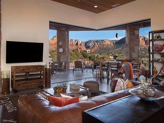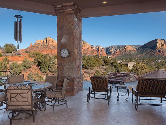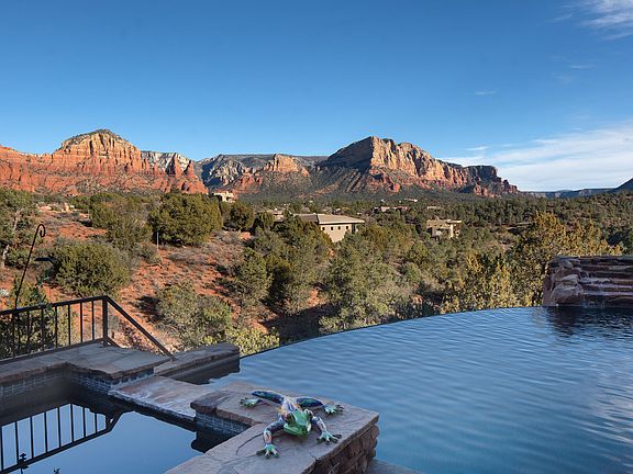 Private hillside estate surrounded by Sedona's captivating red rock views and uniquely positioned to capture the best sunset views available. Sited in one of Sedona's most desirable gated communities and bolstered by high value neighboring homes, this investment is one you can enjoy every day. Soak up the perfectly framed views from the interior or bask in the four mild seasons from the massive covered patio and negative edge pool. Chef's Kitchen features include Subzero refrigerator/freezer, top tier granite countertops, wine cooler. 180 Degree view room with walkout patio has soaring ceilings and unique telescoping doors to blur the lines between indoor/outdoor. Private location within gated community provides seclusion, peace and privacy for this home's next well-heeled owners.
