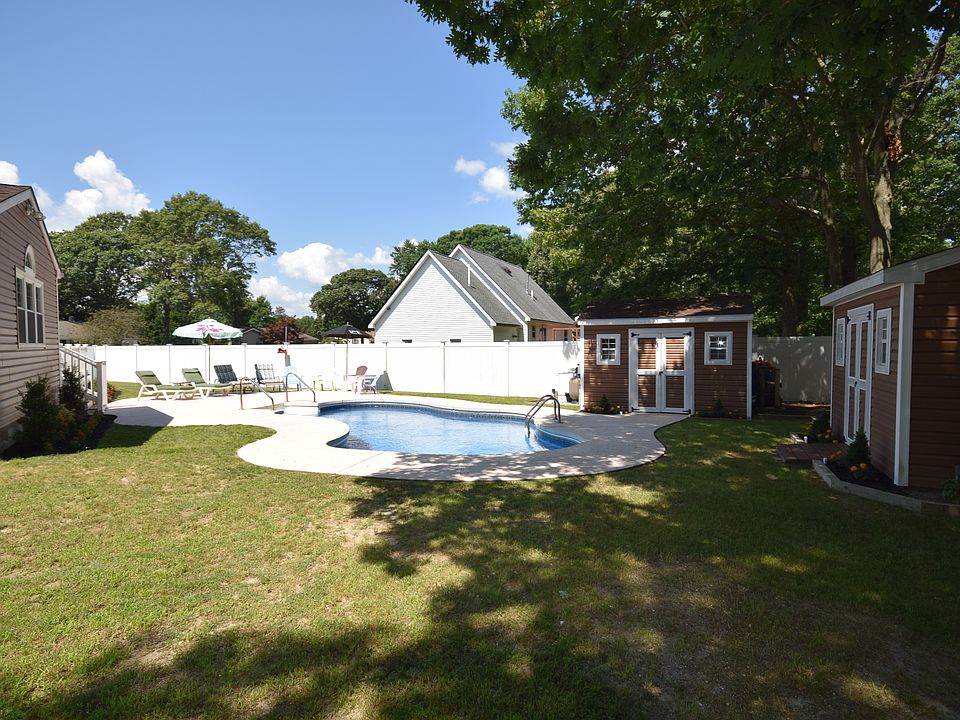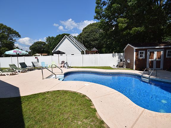 This 4 bedroom, 2.5 bath home is absolutely turn key, in mint condition. Crown molding and chair rails throughout. Freshly painted interior. In law compatible, with a full bedroom on the first floor, and half bath. This impeccable home features a full eat in kitchen, formal living rm and dining rm. Relax in the great room with a remote gas Fireplace, bar, w/sink, granite counters, for entertaining, with beautifully tiled floor. French doors lead to your outdoor oasis, featuring a completely fenced in yard, upgraded vinyl fencing. An extra large trex composite deck, over looks the in-ground pool, with upgraded coping and cement surround. Robot for maintenance free enjoyment is included. Two matching sheds, one with electric, for added outside storage. Vinyl fenced in This home also features a newer roof, replacement windows, shaker vinyl siding, gutters, making the exterior virtually maintenance free. You won't have to do a thing but pack your bags. Sits on a large corner lot.