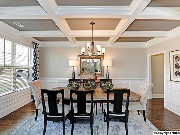 - RoomDiningRoomFeatures: Chair Rail, Wood Floor, Smooth Ceiling, Crown Molding, Coffered Ceiling(s)