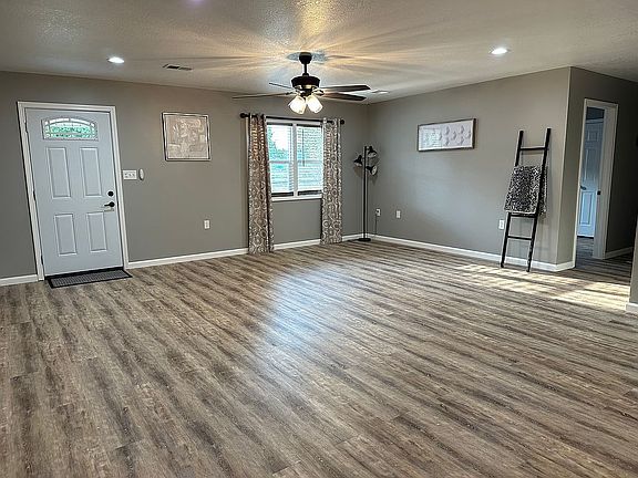 This 4 bedroom/2 bath home has been completely renovated recently! It has a spacious, open floor plan where the kitchen, LR, and dining area flow together seamlessly. The split bedroom layout allows for privacy for the master bedroom/bath area. The kitchen boasts all new cabinets with butcher block countertops, and new appliances. The flooring throughout is a new Luxury Vinyl Plank. Recent updates include new bathroom vanities, toilets, light fixtures/fans, faucets, paint, water heater, exterior doors, deck, and windows. The large, covered, back deck and fire pit area are perfect for relaxing or family gatherings. The HVAC is a 3 year old Trane unit that has only been in use for 3 months now. The roof is approximately 4 years old. This home sits on a 1 acre lot with a storage shed/building for all of your tools and equipment storage. **A new, 2-car, black, metal carport will be installed in the next few weeks for covered parking.** Must see this home to appreciate it!