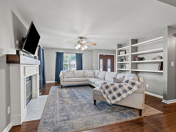 Welcome home! This home includes modern upgrades and eco-friendly features, starting with 13 paid-off solar panels. The heart of the home is the updated kitchen, featuring quartz countertops, a new backsplash, and a smart fridge that will make entertaining a breeze. The spacious living room is perfect for cozy nights in, with built-in cabinets and a beautifully updated mantle for the wood burning fireplace.