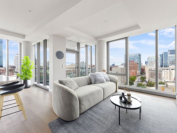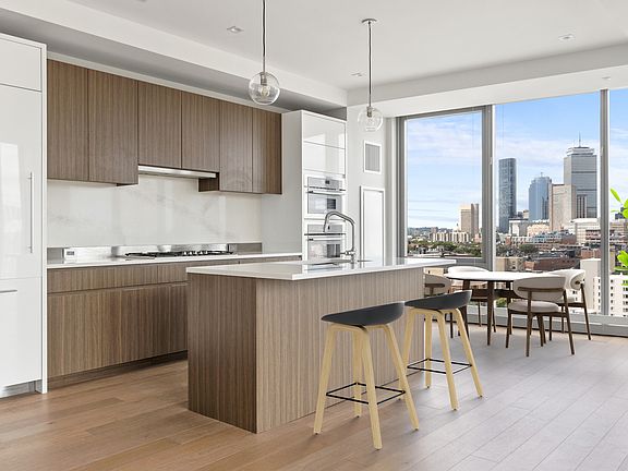 Flexile lease term (6+ months). This stunning 3 bedroom 2 bathroom home features an open concept and balcony with sweeping views of Back Bay, Financial District, and Downtown Boston, this luxurious corner unit is beautifully designed with floor to ceiling windows, white oak flooring throughout, custom lacquer cabinets and Thermadore and Bosch appliances. 100 Shawmut amenities include concierge services, a lobby resident lounge, billiards room, children's playroom, pet spa, fitness center, and three outdoor lounges including The 100 Club which is equipped with gas grills and fire tables. Two garage parking spaces (tandem) included in price. Vacant, easy to show. 1 year min. Due at signing: First, last & security, all equal to one month's rent. Move-in/move-out fee also due at signing.
