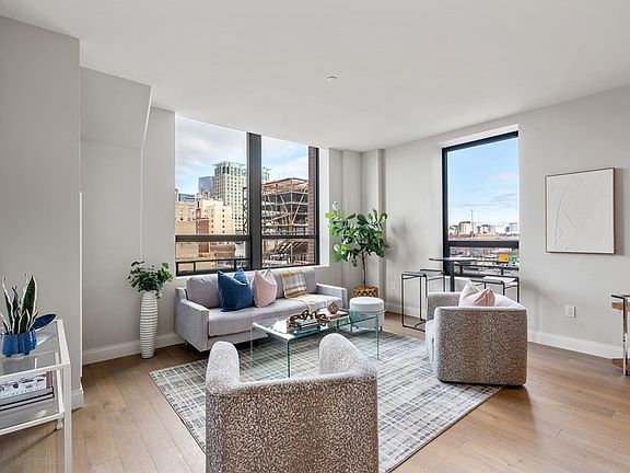 Welcome to 100 Shawmut! This 2 Bedroom and 2 Bathroom residence features Financial District views, open concept living comprised of white oak flooring, 9' ceilings and a kitchen featuring Thermador appliances, Miami White silestone counters and more. Benefit from the convenience of your underground parking space, a private storage unit, 24-hour full-service concierge team, lobby lounge, garage self-parking, great room, library, private dining room with entertaining kitchen, caterer's kitchen, activity lounge, billiards room, children's playroom, pet spa, fitness/wellness center, 3rd floor courtyard, Rooftop Sky Lounge and The 100 Club equipped with gas grills and fire tables directly facing the Back Bay-perfect for entertaining. The ideal way to enjoy a lifestyle of luxury in the South End.