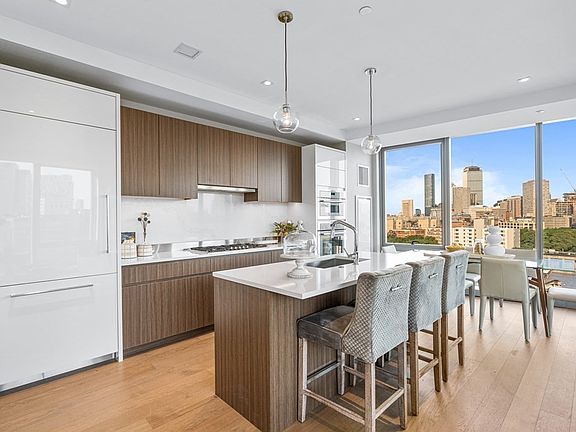 Move-in now to 100 Shawmut-This 3 Bedroom and 2 Bathroom corner residence with spectacular Back Bay and city views features open concept living comprised of white oak flooring, 9' ceilings and a kitchen featuring Thermador appliances, Miami White silestone counters and more. Benefit from the convenience of an underground parking space, private storage unit, the 24-hour full service concierge team, lobby lounge, great room, library, private dining room with entertaining kitchen, caterer's kitchen, activity lounge, billiards room, children's playroom, pet spa, fitness/wellness center, 3rd floor courtyard, Rooftop Sky Lounge and The 100 Club equipped with gas grills and fire tables directly facing the Back Bay-perfect for entertaining. The ideal way to enjoy full service living in the charm of Boston’s South End.