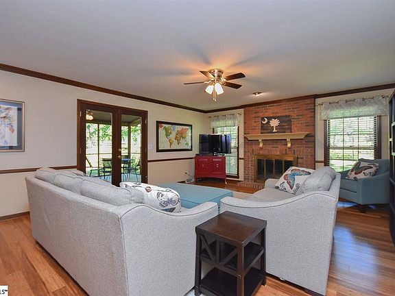 What a wonderful opportunity to get a nice traditional brick home in one of Greenville's more popular east side communities. 4 bedrooms plus a separate bonus room that could be a 5th bedroom, 2 1/2 baths on a great level lot. Hardwood floors will greet you as you enter the home and extend throughout the entire main level. Newer carpet and neutral paint throughout much of the rest of the home as well. The kitchen has upgraded appliances, including built in microwave and wall oven, plus newer upgraded dishwasher and smooth top. There is also an eat-in breakfast area with bay window overlooking the back deck and large private yard. This upscale home features large room sizes and plenty of crown, dental, and chair moldings, plus nice built-in bookshelves in the kitchen and family room that would be perfect for computer work stations. The huge master bedroom has an updated master bath with separate shower and jetted tub, plus dual vanity and walk in closet. The hall bath upstairs also features dual vanity. The formal rooms are both spacious and the living room features glass doors that would be perfect for a home office. Looking for updated systems too? The HVAC downstairs has been replaced in 17' and includes the "nest" thermostat as well as the 30-year architectural roof (5/17). One of the best features of the home is the curb appeal with the giant shaded corner lot and the quaint side porch entryway, you will love this home right when you pull up! All of this and located in a wonderful community within just a short walk to super amenities like pool, tennis, and playground, and zoned for award winning schools!