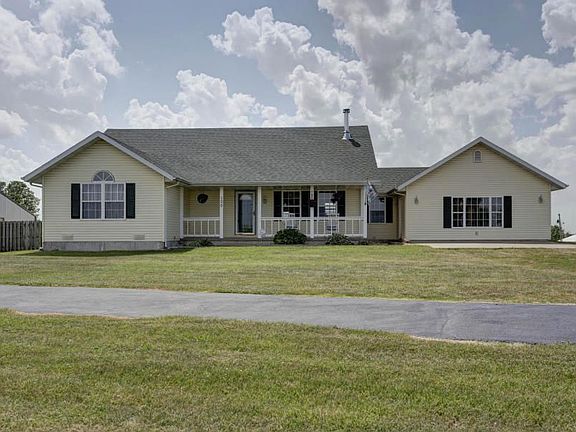 WELCOME TO 100 SHELBRAE LN, CLEVER!Motivated sellers with this lovely 2296 sq. ft. home on 3.44 acres (not in city limits) Level lot, easy access to several major routes. This marvelous property boasts a 40x44 shop w/2--15 ft. --fully electric, insulated rooms, w/ceiling fans and 15x30 support ceilings. 12x40 ft of the shop used by sellers for John Deere equipment and mowers. There is also A 32 X 12 RV SHELTER / STORM SHELTER! 100 x 130 ft. of privacy fence, BI BROWNING GUN SAFE, home wired for security system, along with granite kitchen, 2nd living area. Semicircular drive is paved with turnaround for you convenience!. Think you've seen it all? Enjoy the partially covered back patio/porch overlooking above grd. pool.Buy/ and be in quickly before SPRINGTIME!
