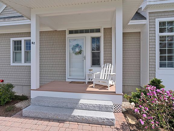 Introducing B-2 a lovely single detached condominium with 2 car attached garage at the beautiful waterfront community of Shepards Cove. Built in 2018 this stunning 2500 square foot shingle style home is a delight to behold! Step inside to find a light spacious open floor plan with 9' ceilings on the first floor. The chef's kitchen beckons you with its crisp white high end cabinets, large island with quartz counters and gas range as well as a dining area bathed in natural light. The spacious living area with crown molding and welcoming gas fireplace also has triple glass sliding doors with direct access to the outside deck to enjoy nature. Through out the first floor are gleaming hard wood floors. The first floor primary suite is privately situated to the back of the home with a walk in closet and custom built clothes cabinet. The impressive ensuite primary full bath includes a stylish soaking tub, separate tile shower, and double sinks. Laundry is conveniently located in the first floor powder room. The second level includes the second bedroom with full bath plus a large open den and a bonus room presently arranged as an arts & craft studio. A large full basement offers ample storage. The 55+ community of Shepards Cove is situated on a 42.5 acre peninsula with 3000 feet of waterfront of Spruce Creek. Walking trails wind along the scenic waterfront lead to the private dock with kayak launch and boathouse. Clubhouse offers exercise room++Near downtown Kittery & Portsmouth, NH.