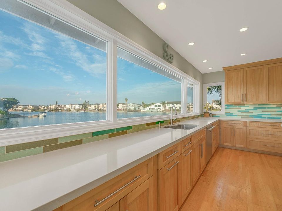Located on one of the most desirable Isles in Foster City, this stunning two-story waterfront, over 4,000sqft, 5-bed, 3.5-bath, home w/custom wood finishes & hardwood floors, is unparalleled in elegance & modern comforts. Personally designed for extended water views, this sun-filled home infuses the best of indoor/outdoor living w/oversized glass doors that open to a gorgeous wind-protected deck from the great room, an intimate sitting area with w/fireplace, & custom built-ins. The gourmet kitchen is built for entertaining w/ a generous-sized stone-topped island, high-end appliances, & a walk-in pantry. With 3 bedrooms on the main floor, including the luxurious owner's suite w/ outdoor access, a walk-in closet, and a luxurious spa-type bath with a glass shower. The upper level is designed around a large loft suited for a media room or additional guest space. Two Cape Cod-style sloped and angled ceiling bedrooms w/ an impressive Jack & Jill bathroom sure to make you take a second look.
