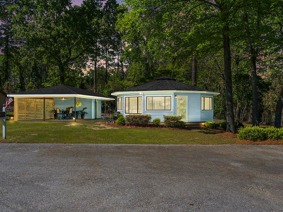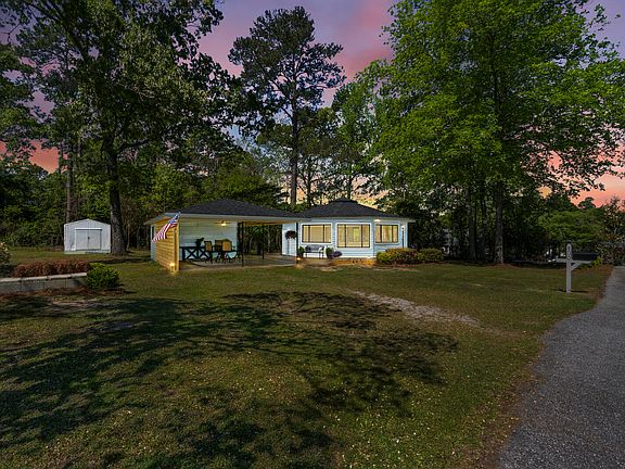 Welcome to the Blue Cat Cottage. This charming second row lakeside retreat is situated on a quiet corner lot and dead end street in Santee. The neighborhood is adjacent to the Santee Cooper Golf Resort on the big water of Lake Marion. The 27,000 sq ft .60 acre lot is the largest on the block with ample space for RV and boat parking. It boasts a fully wooded buffer providing a private backyard sanctuary. There are lake views from the east and north sides of the property. The home has been recently refurbished and refreshed with new flooring, paint, fixtures, appliances. It is approximately 800 sq ft and features 2 identical sized bedrooms with a jack-and-jill style bathroom. It has a large open great room and kitchen. A 150 sf flex space currently functions as a laundry room, with a