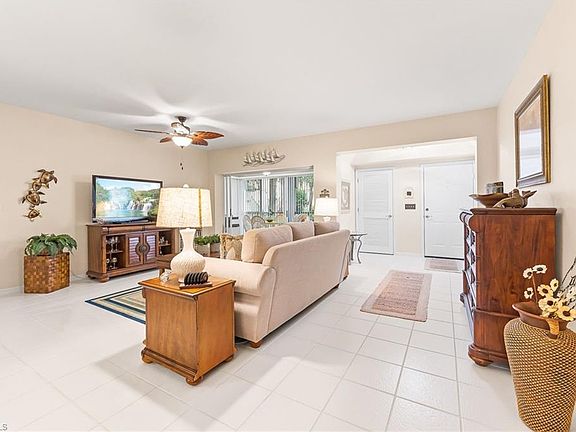 1204 Tuscany has it all! End unit, 1st floor, park-like setting overlooking a beautiful fountain on a lake! This tastefully furnished home in neutral colors has 2 bedrooms and 2 baths and has updates throughout giving it a fresh new feel. The owner has kept the condo meticulously clean. There is assigned covered parking just steps away from the front door and the community center with pool is across the lake. Vineyards Country Club offers optional private memberships complete with 36 holes of Championship golf, 12 Har-Tru tennis courts, pickle ball, bocce courts, swimming pool, fitness center, and country club dining.