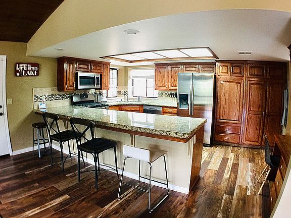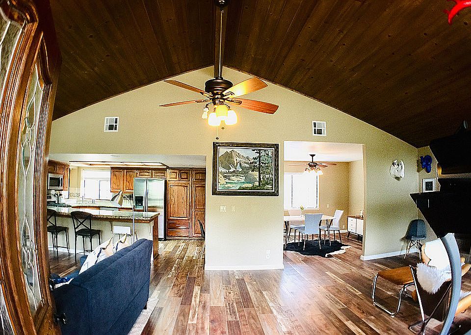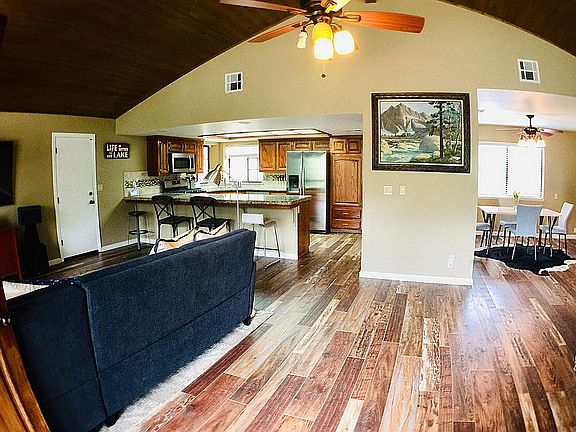 This Kernville home features a nice sized living room w/ vaulted pine finished ceilings, Fabulous wood floors, pellet stove (for those cool evenings) open concept kitchen w/, Beautiful stainless steel Samsung appliances & granite counter tops, separate dining room, 3 bedrooms (all w/ceiling fans), 2 baths w/granite counter tops, Nest Smart Thermostat, plenty of storage in the hallway, secluded back patio harbors a 6 person spa, in the oversized 2 car garage you will find washer/dryer hookups, Chamberlain remote control/wifi compatible door and wooden ceiling mounted storage rack. Set back and enjoy the covered patio and the beautiful mountains. Within walking distance to all that Kernville has to offer. Call to schedule your viewing today.
