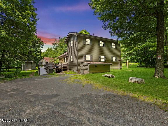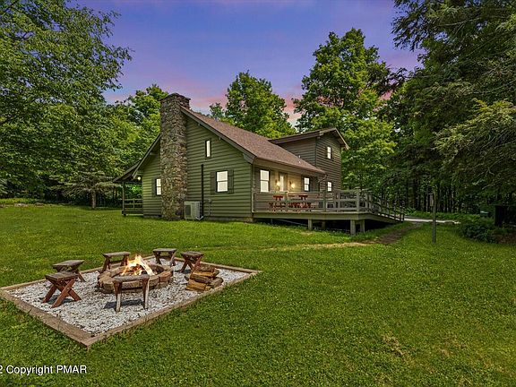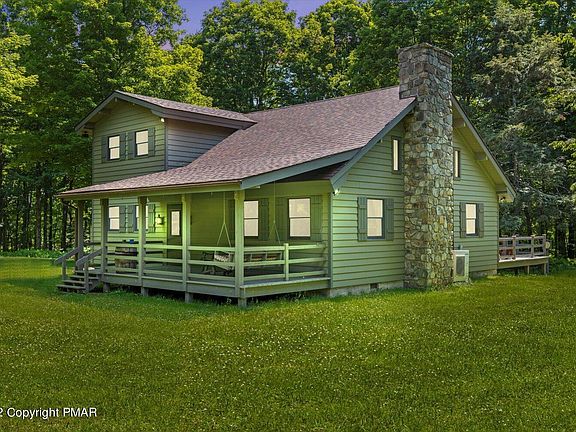 This beautiful Custom built 4 bedroom, 2 bath cabin style home is nestled in the woods for privacy and country living yet only minutes to shopping and beautiful Lake Wallenpaupack. This well made/maintained home also has a wood burner on stone chimney, brand new roof (2021), new A/C system(2021)