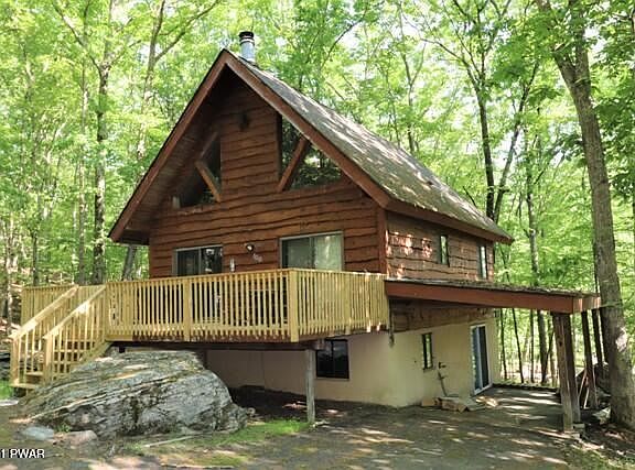 Masthope Mountain Community cabin style ski Chalet for sale!Let this ski Chalet capture your heart with its mixture of sheik modern and woodsy design. House features 3 bedrooms, 2 baths, very nice designer kitchen with granite, cathedral ceiling living room with beautiful stone fireplace, huge family/game room, laundry room, new front decking, large carport, utility shed, paved driveway, and more. Located just a couple minutes from the ski lodge, Summit Restaurant and Bar, pools, tiki bar, tennis, mini golf, Delaware River, and the white sand beach and boat launch at Westcolang Lake!Come and explore Masthope Mountain!